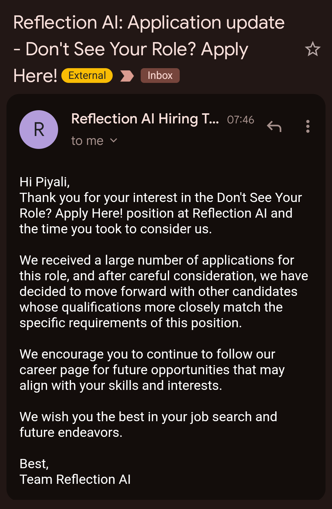 During this time, my social circle shrank rapidly. I taxed the abilities of Linkedin, of Simplify, of my friends at Google, of my friends at Wharton, of my enemies on Linkedin. Even my ex who broke up with me in January helped me get an interview at a tiny AI startup that didn’t find my 8 years of technical experience sufficient. I also chose to isolate myself because I no longer had an answer to “what’s next.” Someone I considered a friend told me that my extremely hard-earned MBA was useless because “well what’s the point of it, if it didn’t get you a job?” Men who digitally catcalled me on Instagram had the audacity to look me up on Linkedin and ask me why I hadn’t merely returned to my former employers. Someone joked that I must have been blacklisted and that’s why my credentials couldn’t get me callbacks. My parents finally enforced a VPN-block on Linkedin at home (yes, the kind that stops people from browsing Pornhub at work), so that I would stop using the Apply button as a means of self-harm.